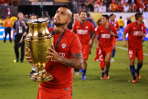 2015年6月,比达尔代表智利参加了2015年智利美洲杯。智利一轮过关斩将,在决赛中通过点球大战4比1战胜阿根廷夺得冠军。比达尔在该届赛事中出场6次,打入3个进球。2016年6月,比达尔代表智利参加了2016年美国美洲杯。卫冕冠军在该项赛事依旧高歌猛进,6月27日,智利与阿根廷再度在决赛相遇,智利通过点球大战4比2战胜阿根廷蝉联冠军。比达尔在该届赛事中出场5次,打入2个进球。