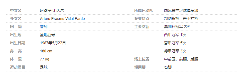 阿图罗·比达尔(Arturo Vidal),全名阿图罗·埃拉斯莫·比达尔·帕尔多(Arturo Erasmo Vidal Pardo),1987年5月22日出生于智利圣地亚哥,智利足球运动员,场上司职中前卫,效力于意大利足球甲级联赛的国际米兰足球俱乐部。个人简介