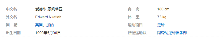 恩凯蒂亚,英国籍前锋。目前效力于阿森纳俱乐部。