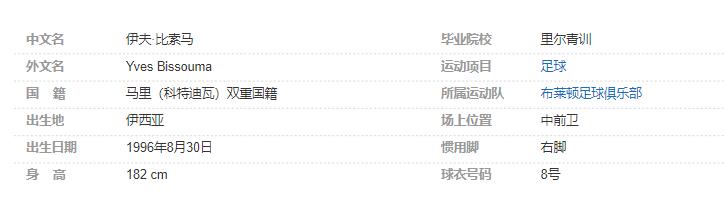 伊夫·比索马现效力于英超的布莱顿足球俱乐部。