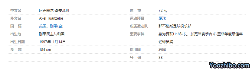 阿克塞尔·图安泽贝(Axel Tuanzebe),1997年11月14日出生于刚果民主共和国,英格兰职业足球运动员,场上司职中卫,效力于那不勒斯足球俱乐部。
