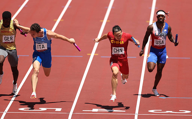 - 【集锦】[腾讯] 37.92小组第一!中国队晋级田径男子4X100米接力决赛2021-08-05 11:53:14