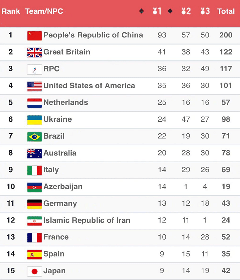 来源:直播车09-05 11:29直播车9月05日讯 ,东京残奥会第11个比赛日,也是倒数第二个比赛日,中国队表现继续抢眼,已经获得了93金57银50铜,总奖牌数突破200枚,里程碑时刻,同时中国队断层式领跑双榜,早就已经提前锁定金牌榜和奖牌榜的第一名,恭喜。