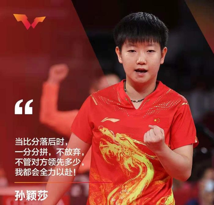 在落后伊藤美诚时心里在想啥呢?为何莎莎能够逆转这关键的一局呢?在结束东京奥运会后,孙颖莎也道出了逆转的秘籍。莎莎表示:当比分落后时,一分分拼,不放弃,不管对方领先多少,我都会全力以赴。