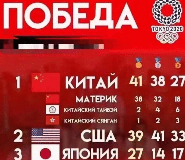 来源:直播车08-11 16:32直播车讯 在今年东京奥运会上,中国代表团发挥出色,拿到了38金32银18铜,位居金牌榜第一。加上中国香港队和中国台北队的金牌数,中国队可以排在第一,超越美国。中国香港队拿到1枚金牌,2枚银牌和3枚铜牌,中国台北队拿到2枚金牌,4枚银牌和6枚铜牌,加在一起,中国队获得41枚金牌,38枚银牌和27枚铜牌,理应排在第一。而俄罗斯媒体也是如此进行排名,美国队排在第二。