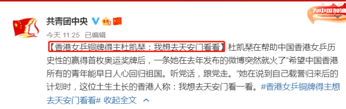 刘国梁喊大伙一起合影,中国香港奥运铜牌得主杜凯琹:我想去天安门看一看