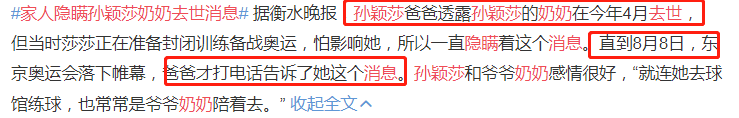 奥运会结束,孙颖莎才知道奶奶去世!家人隐瞒近3个多月,原因曝光泪目了