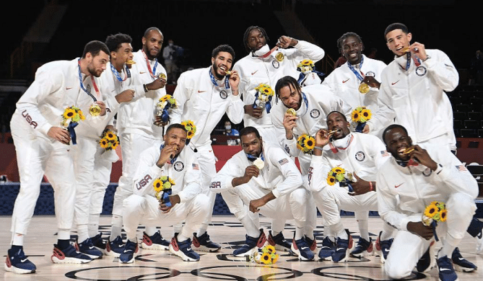 来源:直播车08-10 15:00直播车讯 东京奥运会男篮比赛,波波维奇执教的美国队成为最大赢家,美国男篮在决赛复仇首战击败自己的法国队,成功拿下金牌。从2019年中国男篮世界杯的第7名大溃败,到如今东京奥运会的登顶,实现了4连冠的伟业,美国男篮重新崛起。赛后杜兰特入选到了最佳阵容,还当选赛事MVP,可以说实至名归。同时入选到最佳阵容的还有卢比奥、米尔斯、东契奇和戈贝尔。