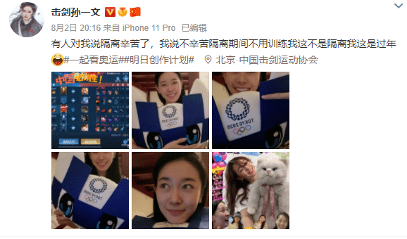 孙一文隔离的时候表示自己并不痛苦,反倒觉得像过年一样,她还晒出了自己隔离期间打手游的截图和一系列的自拍,称:“有人对我说隔离辛苦了,我说不辛苦隔离期间不用训练我这不是隔离我这是过年”