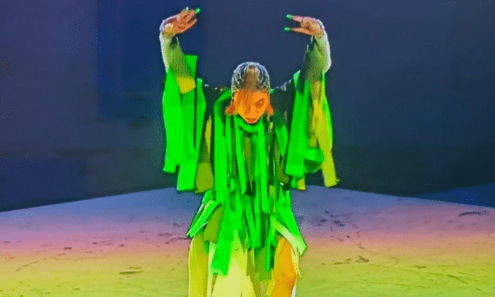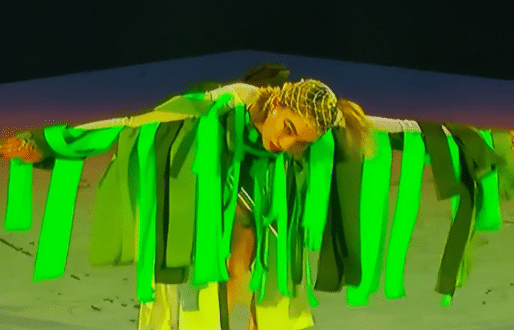 现场还有一个人在跳舞,她穿的是绿色的衣服,表情管理不知道还是本来就这样,还是有些不到位,令人看不懂的同时有些吓人,确实是令人很无奈。