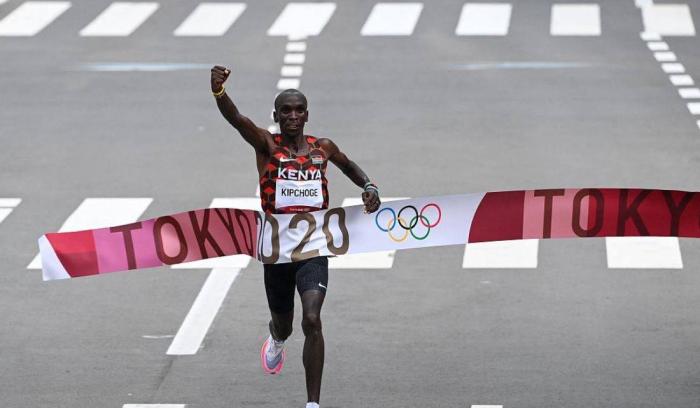 来源:直播车08-08 11:27直播车讯 北京时间8月8日,刚刚结束的东京奥运会男子马拉松比赛,现世界纪录保持者,肯尼亚选手艾利乌德-基普乔格,以2小时8分38秒的成绩夺冠。这也是他继2016年里约奥运会之后,再次蝉联该项目冠军。