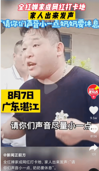 而这几天,全红婵老家也是格外“热闹”。当地的,包括外地的各大网红都到全红婵的老家进行直播、录像,而且声音特别大。80多岁的全红婵的奶奶已经2天没休息好。不得已,全红婵的家人只能站出来,对守在门外的网红们说:“请你们声音要小一点,不管你们是直播还是录像,不要打扰到家里的老人,老人已2天没怎么休息了。”