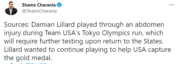 利拉德、塔图姆等球员也是对瓶吹,决赛对阵法国最后一节,利拉德连续得分稳住局面,不过利指导投篮状态还是不佳;赛后名记shams报道,利拉德在奥运会期间受伤了(腹部受伤),将返回美国队接受进一步治疗,利拉德坚持带伤出战并助美国队夺得金牌。