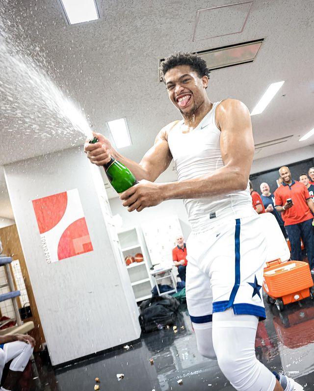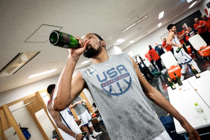 美国男篮更衣室庆祝曝光!夺冠后全队狂喷香槟,杜兰特利拉德对瓶吹