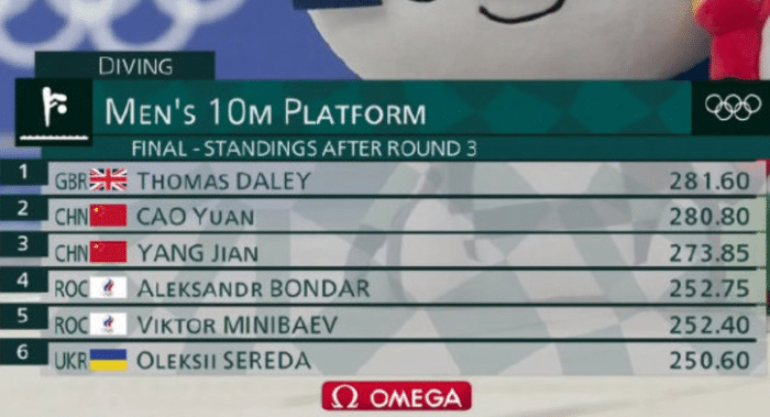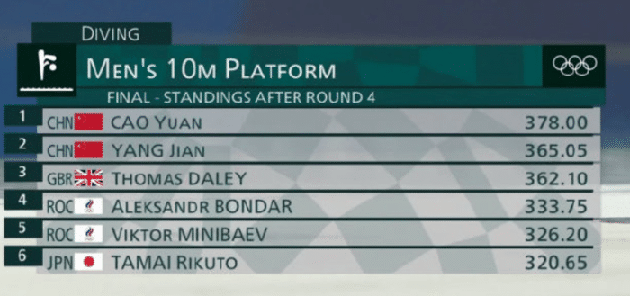 来源:直播车08-07 15:28直播车讯 8月7日,奥运会跳水的收官之战男子10米跳台决赛上演,中国选手曹缘和杨建出战,最终曹缘依靠着第4轮的出色发挥,成功反超戴利,他压哨绝杀,总分582.35分,斩获了这个项目的金牌,队友杨建夺得银牌。戴利重大失误惨遭逆转,获得铜牌。