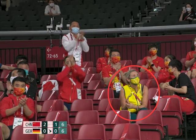 值得一提的是,本场比赛看台上的国乒冠军助威团混入一位外国姑娘,一身黄色的衣服格外显眼,现场的直播镜头也是多次给了这位姑娘,可以看出这位妹子穿的是澳大利亚国家队队服,因此这妹子极有可能是澳大利亚乒乓球队的,她一直认真观看比赛,直至结束,当离开时她不断地给获得金牌的中国队鼓掌,而且是一边走一边一路地鼓掌,从这举动可以看得出,他是发自内心的鼓掌,并不是客套的鼓掌。