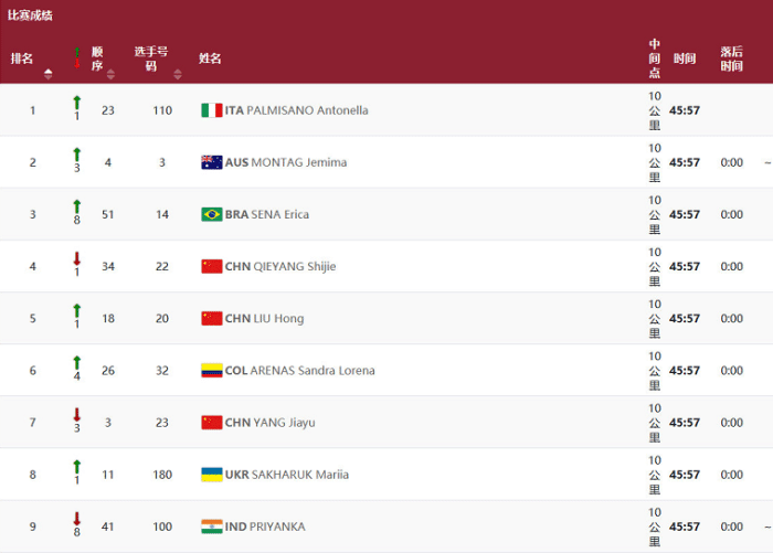 来源:直播车08-06 19:56直播车讯 8月6日,奥运会田径女子20公里竞走决赛,中国选手刘虹、杨家玉和切阳什姐出战,她们分别排名世界第一、第二和第三。最终意大利选手帕尔米萨诺获得金牌,刘虹拿下铜牌,其中杨家玉在最后阶段被出示3张红卡被迫休息2分钟。