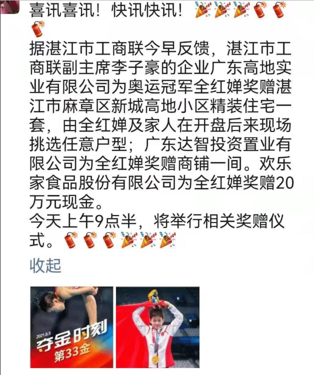 家乡企业重奖14岁全红婵!房子+商铺+20万,游乐园也安排了