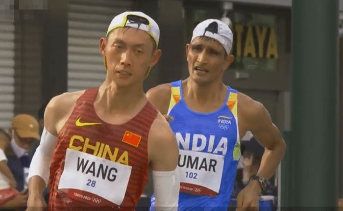 印度选手库马尔因为已经领到两次牌,他与王凯华的距离逐渐拉开了,10分里过后的时候,中国队的王凯华依然是排在了第一的位置 ,印度选手库马尔的体力出现了很大的问题,他已经拉到了很往后,12分里的时候,后面的选手已经慢慢是地追了上来,17公里的时候,中国选手王凯华排在了第6的位置 ,张俊在第七的位置 。