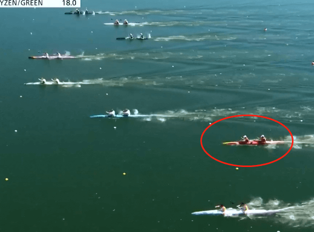 接下来亮相的是参加男子1000米双人皮划艇项目决赛的中国组合王丛康/卜廷凯,比赛开始,中国组合处在第7航道,起航阶段中国队的桨频在130左右,并不占优,第一个250米过后,王丛康/卜廷凯仅仅处在第七位,在赛程中段,中国组合逐渐脱离了第一集团,与前六名的队伍拉开了距离,冲刺阶段,王丛康/卜廷凯没能实现超越,最终拿到了第八名的成绩,但是比赛用时已经创造了我国的最好成绩,依然恭喜他们!