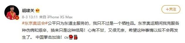 值得注意的是,这已经不是田中亮明晋级路上第一次制造争议了。在16进8的比赛中,田中亮明在对阵中国拳手胡建关的比赛中,多次使出阴招,用肘和头部攻击胡建关,导致后者头部流血。但令人意外的是,当值裁判却对此视而不见,最终胡建关被判1-3输掉比赛。赛后,这位为奥运会准备了5年的中国拳手伤心的表示:“公平只为东道主服务,我只不过是牺牲品,输的心有不甘也是很无奈。”