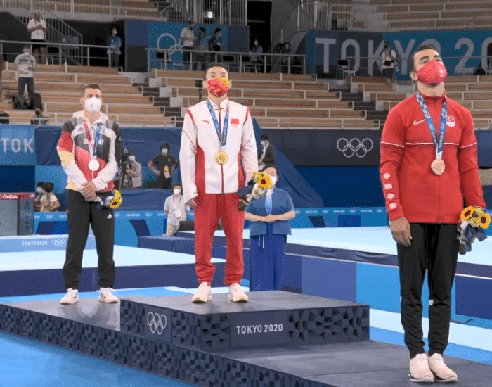 邹敬园淡定接过金牌,升国旗,唱国歌,这是属于邹敬园的时刻。这一场决赛,邹敬园的发挥非常完美,他也是用自己出色的完成分,拿到了这枚金牌。对于中国体操男队来说,这次奥运会拿到2金2银和2铜的成绩,也是证明自己的实力。男子全能的比赛,肖若腾多少有些遗憾,但是,中国男子体操在东京,还是能够站上冠军领奖台,进一步证明自己。