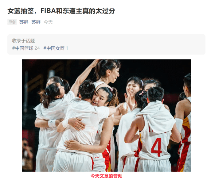 苏群老师昨日在解说中国女篮VS比利时时就说过,希望日本别故意使坏,在抽签上动手脚,但没想到结果却是这样!在今日早些时候他更新了一篇长文来分析,标题更是直接痛批《女篮抽签,FIBA和东道主真的太过分》是否有黑幕我们不得而知,但这个抽签结果似乎的确是我们不想看到的!