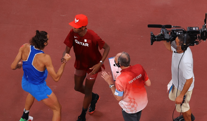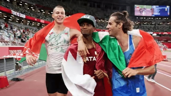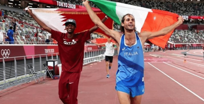 这个时候两人开始疯狂庆祝夺冠,他们一起共享了这枚金牌。值得一提的是29岁的坦贝里在上届奥运会因伤退赛,而巴尔希姆也曾经帮助过他,他们一起并肩前行,巴尔希姆也成功圆梦奥运会金牌,他在2012年伦敦拿下铜牌,2016年里约斩获银牌,在东京站上了最高领奖台,恭喜。