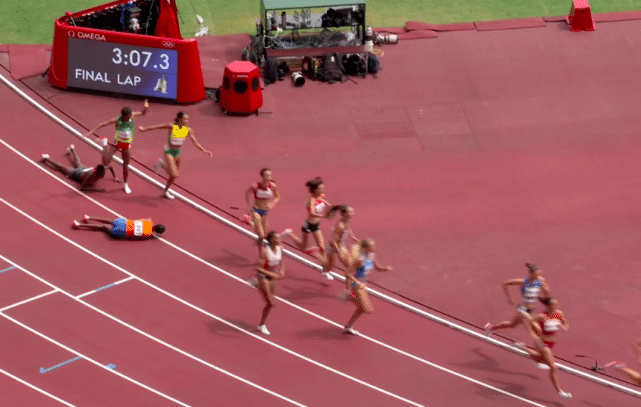 奥运田径大逆袭!荷兰名将最后一圈被绊倒,起身从倒二狂追到第一