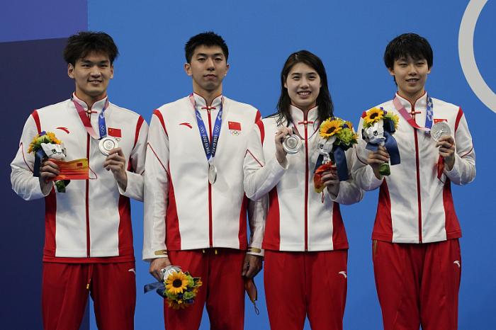 中国代表团在游泳赛场披荆斩棘,多面金牌入账让国家在东京奥运会的排名节节上升。汪顺、张雨霏、杨浚瑄、汤慕涵、李冰洁都是金牌选手。而张雨霏到现在已经获得了“两金两银”,成为中国奥运代表团的“集牌狂魔”。她获得的奖牌包括:7月26日,张雨霏参加女子100米蝶泳比赛获得银牌。随后,张雨霏在7月29日连续获得女子200米蝶泳和女子200米蝶泳的金牌。而且,这也是她在80分钟之内完成的创举,可以说是夺金“梅开二度”。