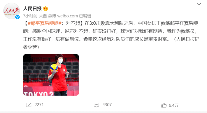 郎平哭着向全国球迷道歉!惠若琪也泪目,人民日报:我们别丧失志气!