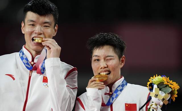 接下来的两场决赛都是中国队的内战,也就是说在开打之前中国代表团已经提前包揽了金银牌。下午率先进行的是羽毛球混合双打的决赛,王懿律/黄东萍组合迎战郑思维/黄雅琼组合。这场被戏称为队内教学赛的决赛场面上看起来出乎意料的激烈,双方你来我往互不相让,前两局战成1比1平。决胜局双方体力的差距决定了比赛的走向,"黄鸭"组合依靠更优秀的轮转击败队友"雅思"组合,成功拿下中国代表团的第18金。