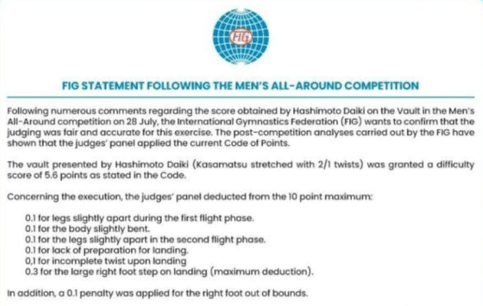 来源:直播车07-30 20:28直播车讯 北京时间7月30日消息,针对此前引发体操界巨大争议的奥运会男子个人全能比赛打分事件,国际体操联合会给出了官方回应。这是一次史无前例的回应,因为国际体联此前从未在赛后给出过打分细则,这一次也是因为争议太大,才做出了回应。