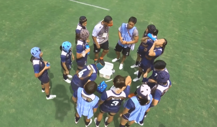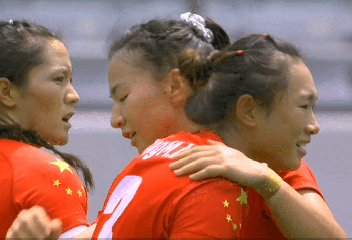 上半场的比赛开始后,中国队通过精彩的配合由徐晓燕完成了达阵,中国橄榄球队7:0领先日本橄榄队,中国再次完成达阵,上半场的比赛还剩下1分多钟的时候,中国队的徐晓燕利用速度再次完成了达阵,中国队19:0领先日本队,上半场的比赛结束中国橄榄球队19:0领先日本橄榄球队。