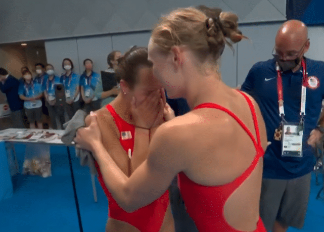 由于两人的发挥实在太出色,最后一跳刚结束,成绩还没有出来,所有人都已经知道了这场比赛的冠军归属。此时镜头给到了美国组合,此时两人已经忍不住自己内心的激动,她们哭了。当然,她们不是因为失败哭泣,而是因为拿到了第二哭泣,他们没有想到能拿到亚军。