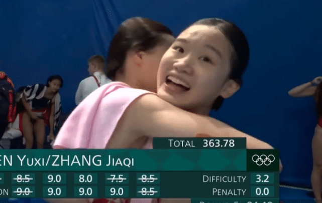 中国跳水第二金!00后美少女拥抱淡定庆祝,亚军季军喜极而泣