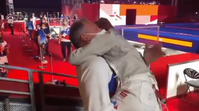 传承!女儿爆冷夺冠,父亲拥抱祝福,时隔25年父女同一项目摘金
