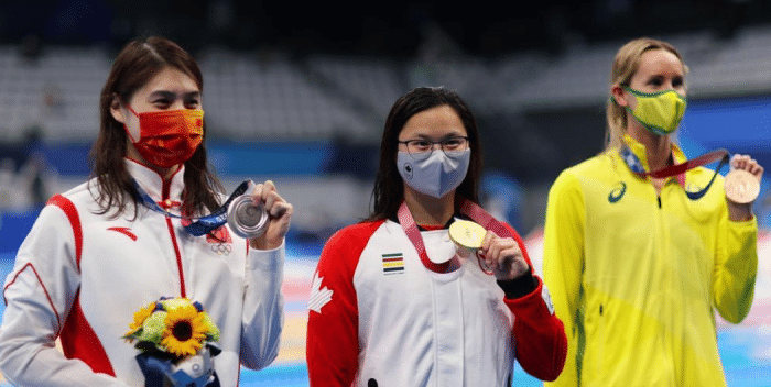 游泳女子400米自由泳的决赛,中国选手李冰洁摘得铜牌,中国选手汤慕涵排名第五。澳大利亚选手蒂特穆斯拿到金牌,莱德基3分57秒36摘银,中国选手李冰洁一举打破亚洲纪录摘铜。