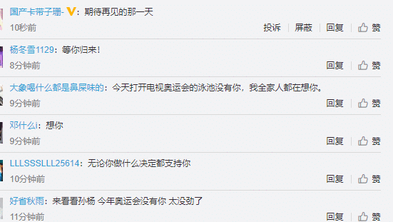 上午的主项都是游泳,不少人表示非常想念孙杨,如果是有孙杨的话,相信本届奥运会游泳项目的关注度还会更高。甚至有不少的网友去到孙杨已经很久没有更新的社交媒体动态下面留言,称想念孙杨:今天打开电视奥运会的泳池没有你,我全家人都在想你,期待再见的那一天,等你归来!