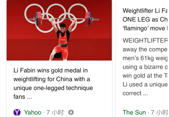 李发彬举起杠铃之后金鸡独立的画面也是在外网刷屏,各大媒体集体报道,不同于我们国内更多的是“金鸡独立”这个词语,外媒的报道方式是不同的,其中美媒表示李发彬是flamingo lift,火烈鸟站立。《Business Insider》更是直言李发彬参加男子61公斤级举重,单腿举起了166公斤,接近自己体重三倍的重量。