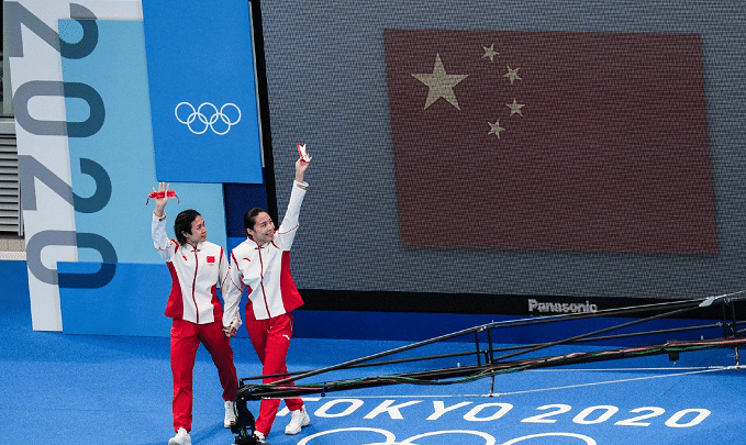 来源:直播车07-25 15:10直播车讯 7月25日,东京奥运会的跳水首金出炉,中国队的王牌组合施廷懋和王涵从第一跳就处于第一名,之后一直稳居榜首,最终她们以5跳总分326.40分完美夺冠。施廷懋卫冕成功,个人生涯第3枚奥运会金牌,王涵拿下个人奥运会首金。这也是中国队在本届奥运会的第4枚金牌,恭喜施廷懋和王涵。