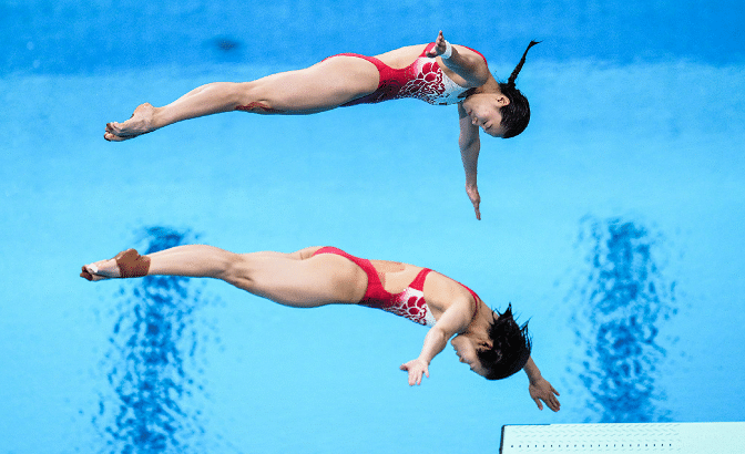 其实通过这届比赛可以明显的发现,施廷懋和王涵不会去管其他的成绩如何,就是稳扎稳打做好自己的动作,每一跳不要求难度一定是最大的,但一定是最稳的,哪怕是稍有些失误,也是瑕不掩瑜。而其他的选手,从难度、起跳高度等想办法,越是这样,越是无法超越中国跳水梦之队。