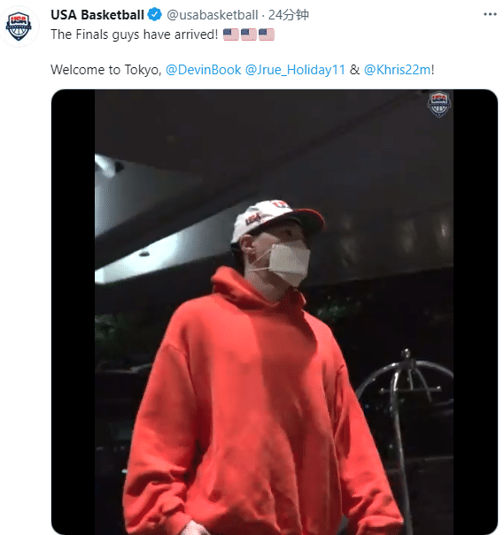 来源:直播车07-25 09:46直播车讯 北京时间7月25日,米德尔顿、霍勒迪和布克三名球员正式抵达东京,正式和美国男篮会和;美国男篮官方发推写道:参加总决赛的球员已经抵达,欢迎来到东京。