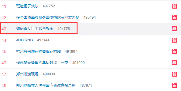 比赛结束之后,中国女足主帅贾秀全登上热搜榜,当然也可以说是被骂上热搜,因为他在3-1领先的情况下换下了主力中锋、作用明显的杨曼,导致中国女足自乱阵脚,之后甚至被赞比亚4-3反超,依靠着点球才惊险获胜。这样的情况下,球迷们纷纷在网络怒斥,希望贾秀全可以下课。