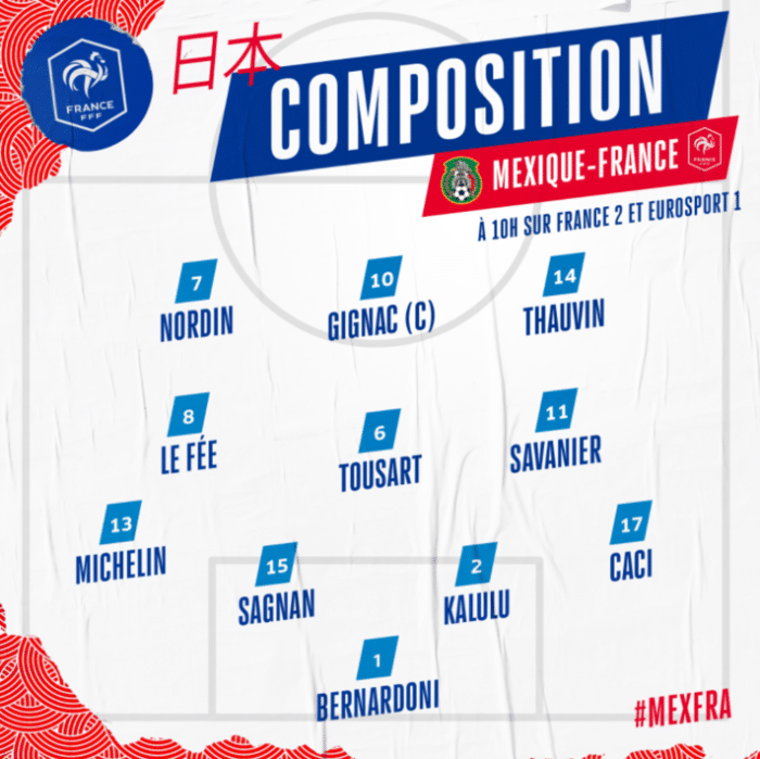 法国国奥vs墨西哥国奥:托万领衔,卡卢卢首发