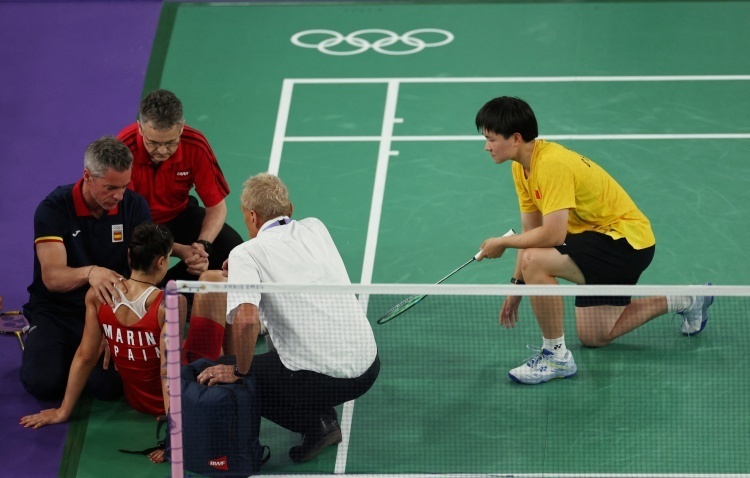 来源:直播车08-04 18:05直播车讯 在北京时间8月4日结束的巴黎奥运羽毛球女子单打半决赛中,里约奥运会该项目冠军、西班牙名将马林在局分1-0领先,第2局也大比分领先情况下,膝盖重伤无奈退赛,如此一来她的对手、中国选手何冰娇也因此晋级决赛。