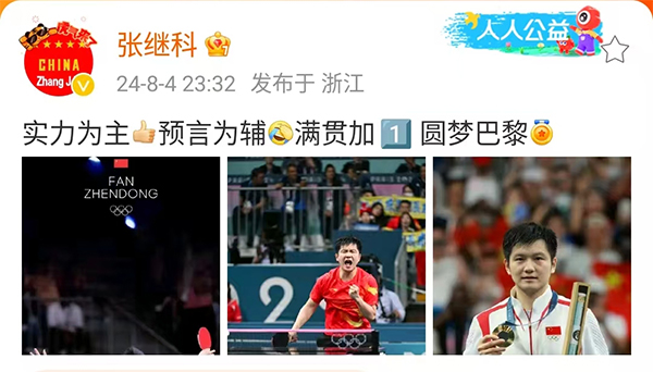 而在樊振东获得了巴黎奥运会男单冠军,喜提大满贯的时候,张继科也是摊牌了发声,官宣了决定。接着樊振东的夺冠,张继科也是做了决定,那就是启动了自己昔日的账号,张继科用自己直播的方式宣布了回归,这是很多球迷没有想到的,这也是张继科在出事后第一次使用自己的账号和正面直播,要知道之前传出张继科将前往日本执教的时候,他也是让父亲回应,他自己的账号也是没有任何的动静。