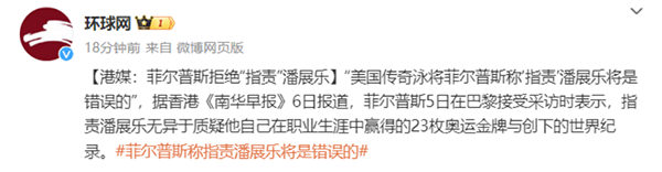 菲尔普斯对潘展乐态度转变但抹黑中国游泳引争议