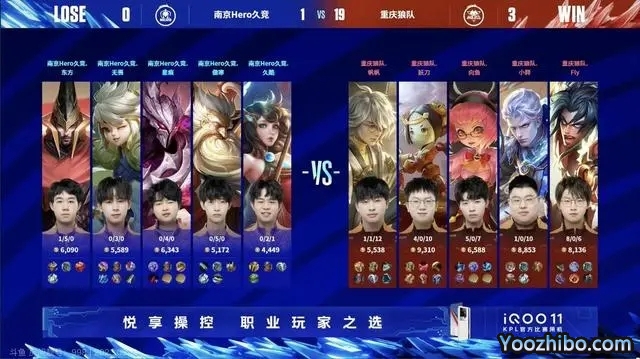 直播车讯 北京时间03月19日,在KPL第二场比赛中,重庆狼队以3-0的比分屠杀了南京Hero久竞,拿下第二轮常规赛S组的第二个大场积分。