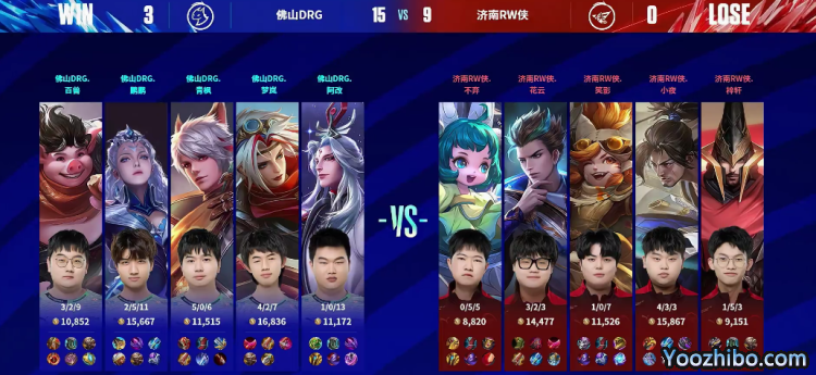 恭喜佛山DRG以3-0的战绩横扫了济南RW侠赢下了比赛胜利,拿到了KPL春季赛二连胜并终结了济南RW侠的二连胜。
